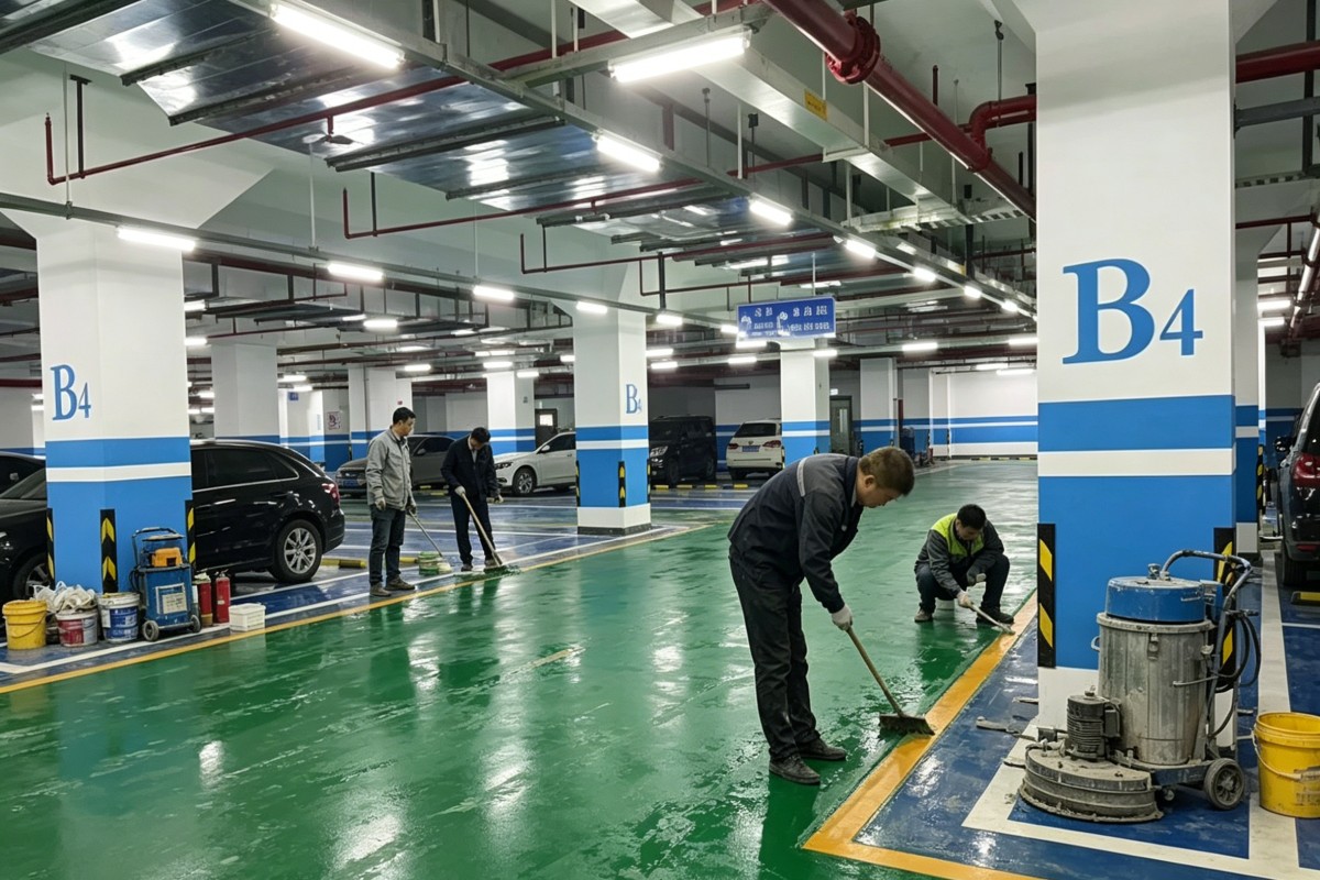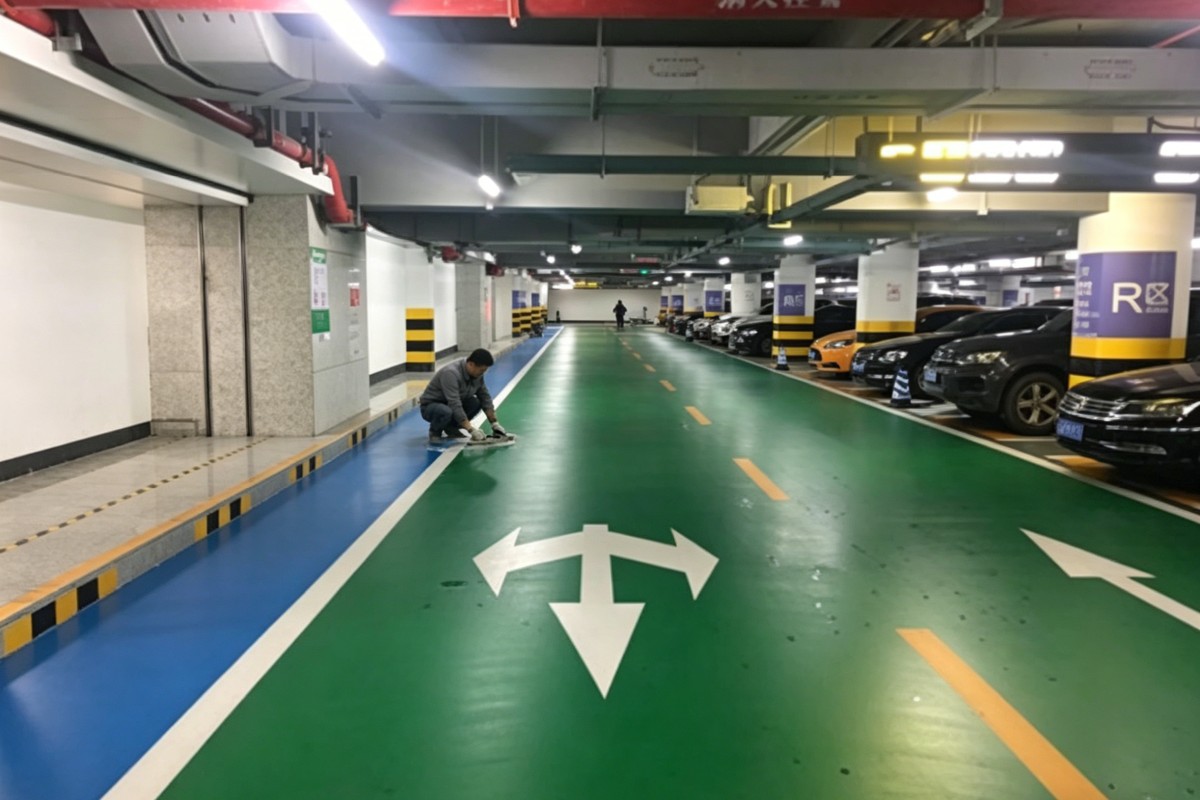 朝阳双塔前进街道停车场车库聚氨酯地坪施工厂家